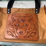 本体、側面はヤギの革、持ち手と虎のロゴは牛革です