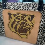 本体、側面はヤギの革、持ち手と虎のロゴは牛革です