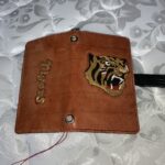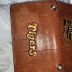 牛革に木づちで刻印を一打一Tigersのロゴを打ち込みました