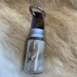 珍しい物のミニボトル(非売品) 2024.04.15 珍物キーホルダー 今回は珍しいを3点の紹介します 1.海亀の革の瓶詰め ミニボトル瓶詰のフタも海亀の革をギボシで取り付けました 2.うさぎの毛皮の瓶詰め ミニボトル瓶詰のフタにはヤギの革を取り付けました 3.ヘビの星砂の瓶詰め 蛇の革を☆型にカットし瓶詰めにしました ミニボトル瓶詰のフタにはヤギの革を取り付けました(白蛇の革は金運UPに成ると言われているが このボトルも機運UPに成れば幸いです コメントは受け付けていません。