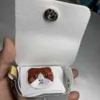 可愛らしい AirPodsミニバッグに猫のハンカチをセットしました。