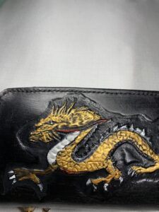 金龍長財布 (売り切れ受注製作) 特別価格 68000 円 (税込) 78000 円 (税込) sold out ※商品価格以外に別途送料がかかります。 説明 革を黒色に染めて筆でゴールドに塗り上げています カードは片面6カ所X2とたっぷり両面に札入れと満足に入ります 世界に一つだけの財布をあなたの手に 送料無料 コメントは受け付けていません。