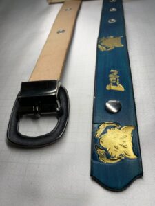 革ベルト ブルー (送料無料) 特別価格 8800 円 (税込) 11800 円 (税込) ※商品価格以外に別途送料がかかります。 説明 牛革ベルト 染料で青色に染めていますが ややグリーンぽく見えます。 穴は4穴 780㍉〜960㍉ 幅36㍉ ベルトを通した後の止めホック付き ベルト収納時のネコの足型収納ホック付き (送料無料)オープンSALE 11800→8800 コメントは受け付けていません。