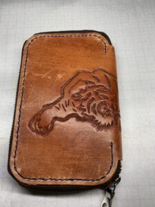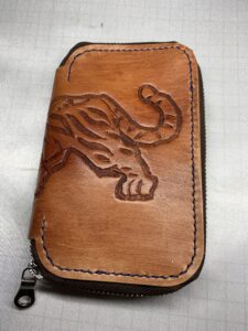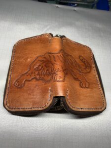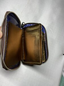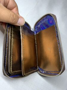 内革の高級感を思わすブルー 内側部分はすべてヤギの革を使用しました。
