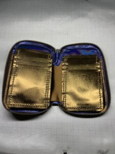 ファスナー式で中は鮮やかなゴールドのカードケース