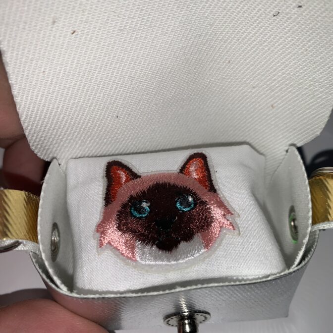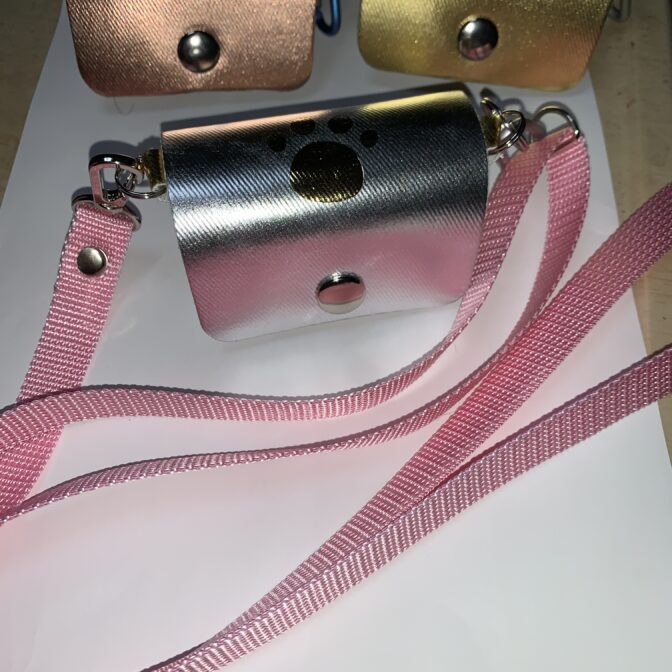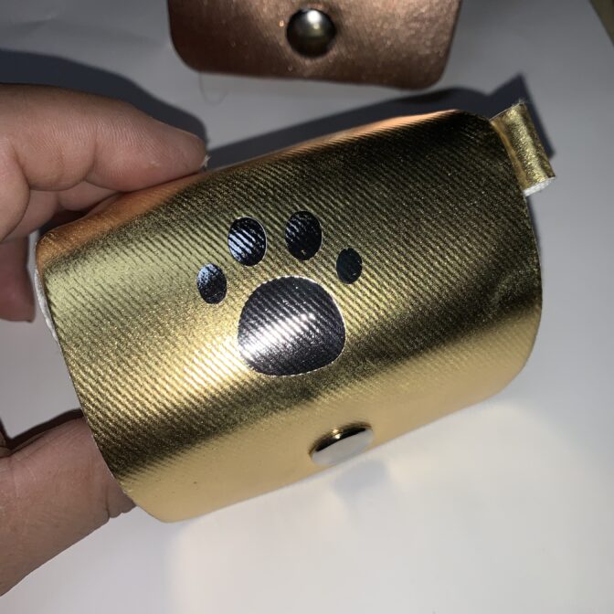 バッグ表面には猫の足跡を金箔、銀箔を転写して有ります